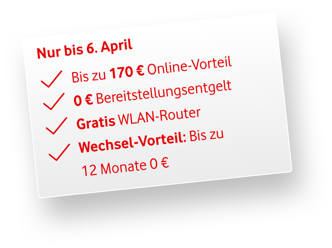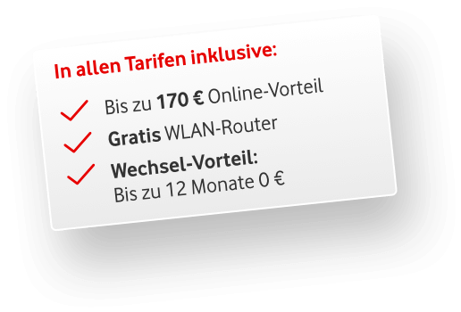 Hol Dir exklusive Festnetz-Angebote in bester Qualität zum Top-Preis-Leistungs-Verhältnis - egal ob Internet, Telefon oder TV. Du bekommst die Vodafone-Highspeed-Internet-Produkte über DSL, Kabel oder LTE. Mach gleich den Verfügbarkeits-Check und prüfe, welchen Anschluss Du an Deinem Wohnort bekommen kannst. Dabei zeigen wir Dir gleich die besten Internet- und Telefon-Angebote für Deinen Anspruch.